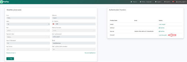 - Klikoni Link Microsoft për të lidhur llogarinë tuaj Profisc me llogarinë MS 365.