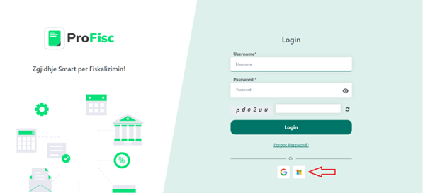 - Në çdo hyrje të ardhshme në Profisc, klikoni ikonën e MS 365 në faqen kryesore të login-it.