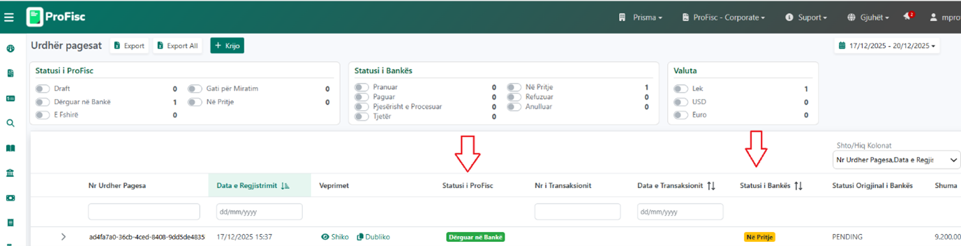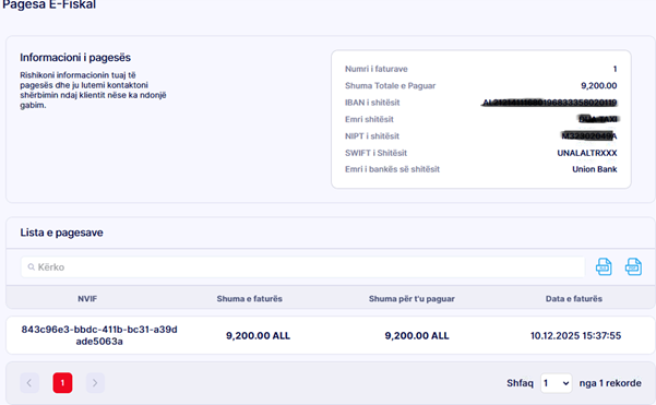 Ne profisc ne griden e urdherave te pageses ky Urdher Faqjase do te perditesohet me te dhenat nga Banka Date transaksioni dhe Numer Transaskioni.