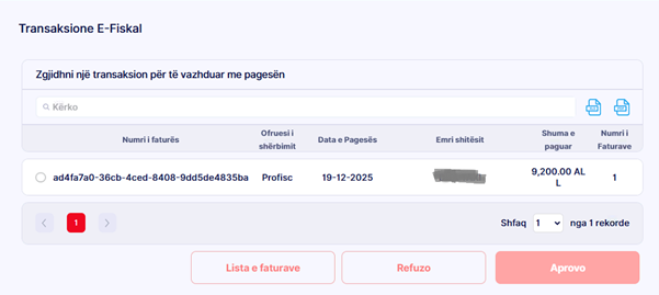 Zgjdhni nga lidta transaksionin qe deshironi te pagoni dhe klikoni ne Aprovo